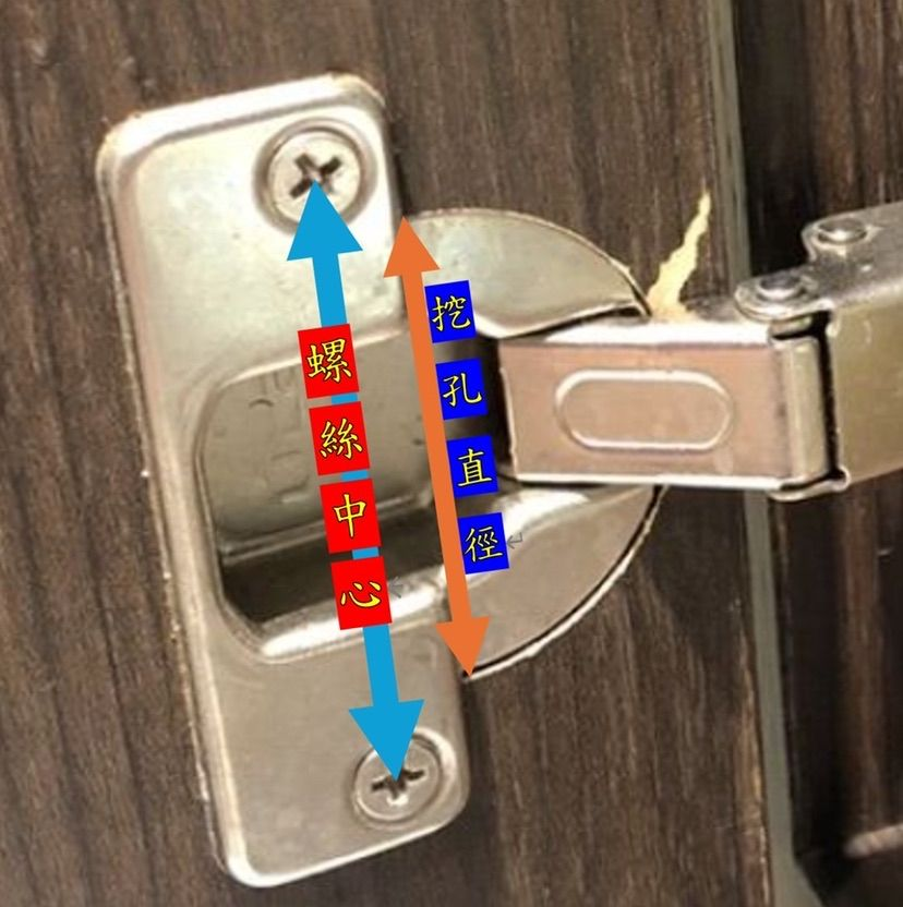 2. 鉸鍊上的挖孔直徑mm,如果能直接測量門板上的孔會更準確