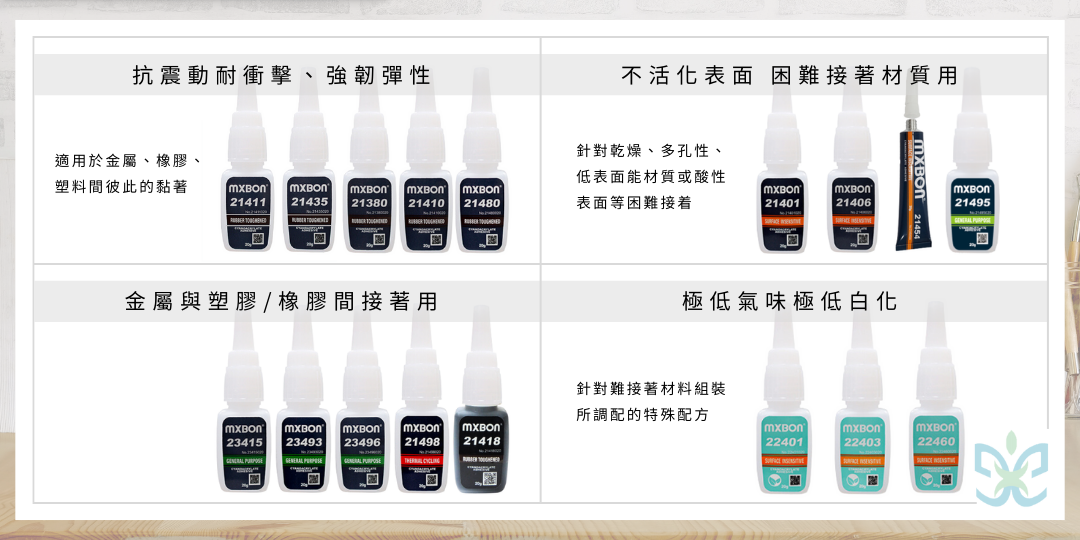 黏塑膠、黏金屬、黏橡膠:北回快乾105、長春快乾CA-155、長春低白化快乾CA-260
